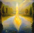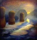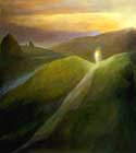 Nancy Kittredge's richly beautiful oil paintings capture a timeless, mysterious quality. Small figures often running or moving weightlessly, are secondary to the majesty of their surroundings. One senses life's frailties and strengths, and the cycle of birth, life, death, and joyous rebirth. Born and educated in New England, Kittredge has shown extensively with gallery exhibitions in Chicago, San Francisco, Phoenix, Los Angeles, San Diego, and New York. . |